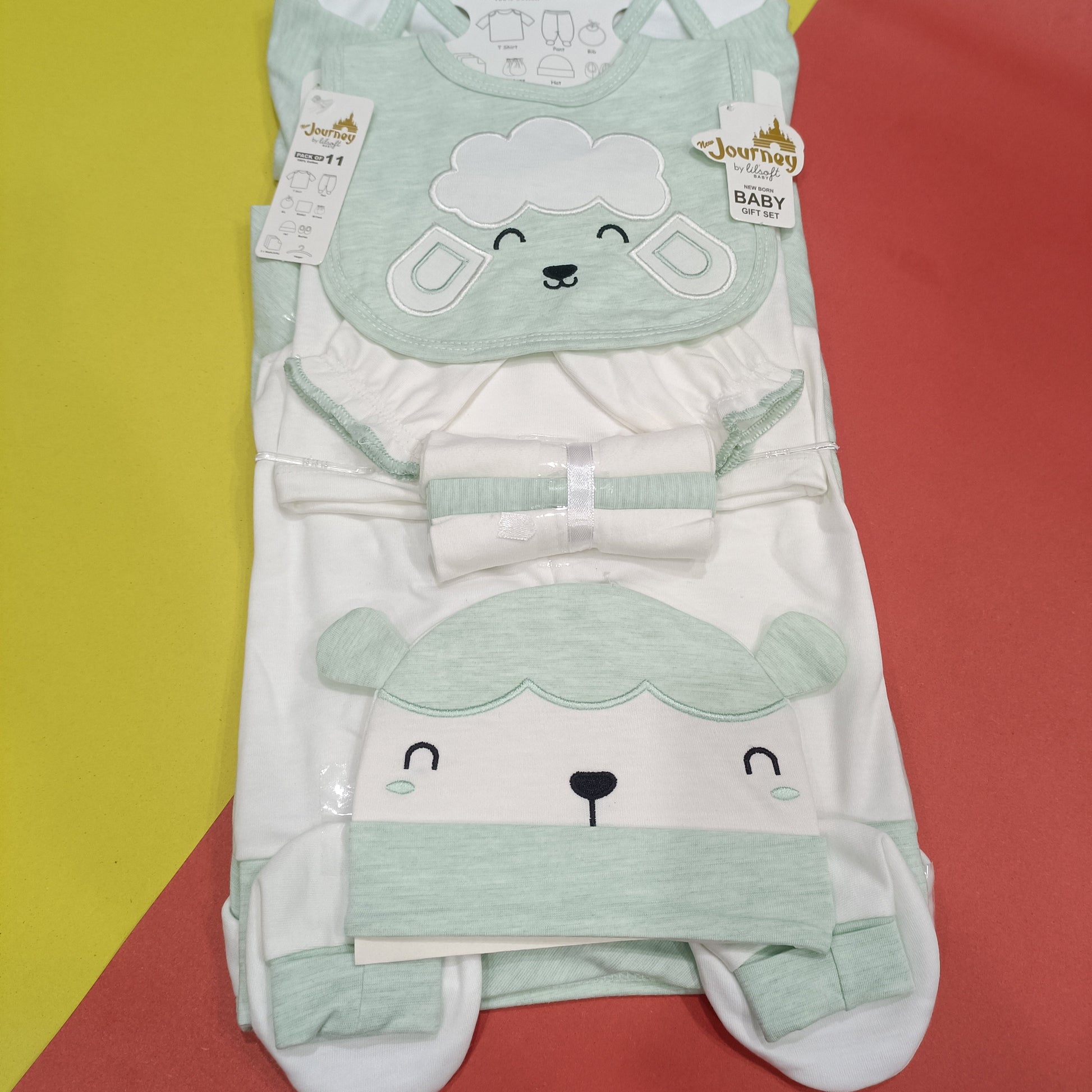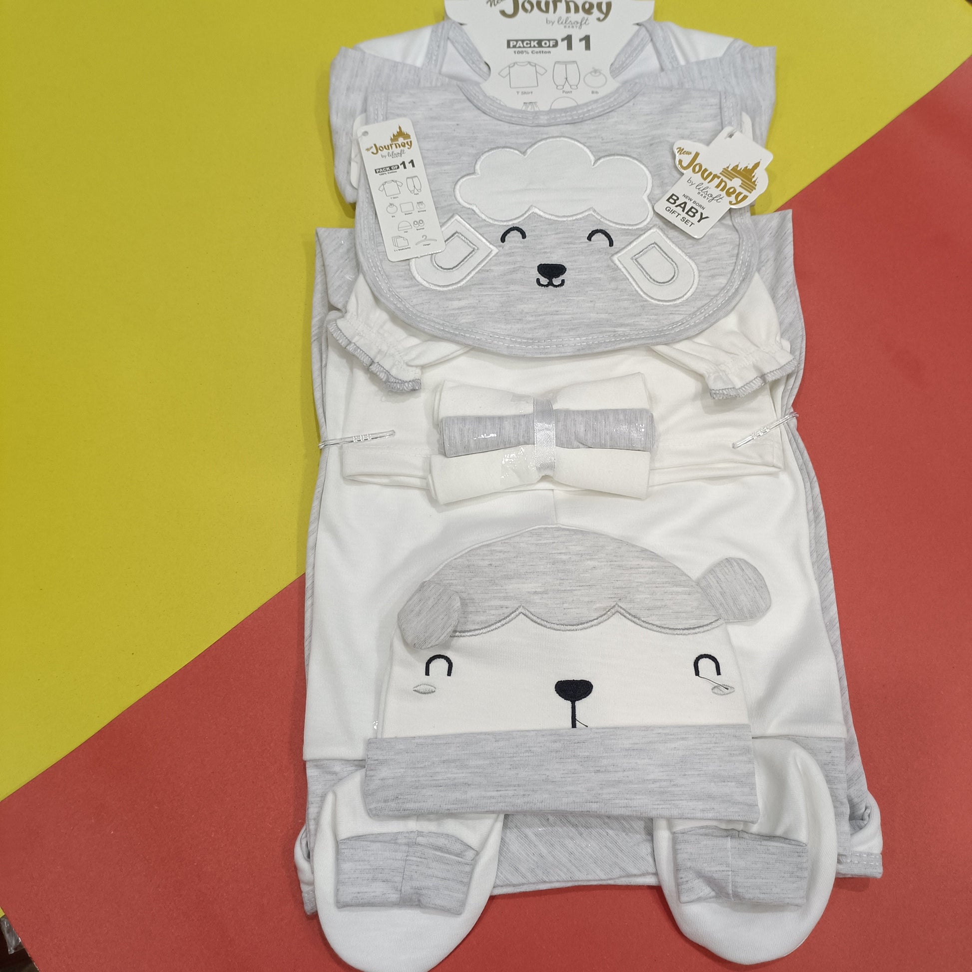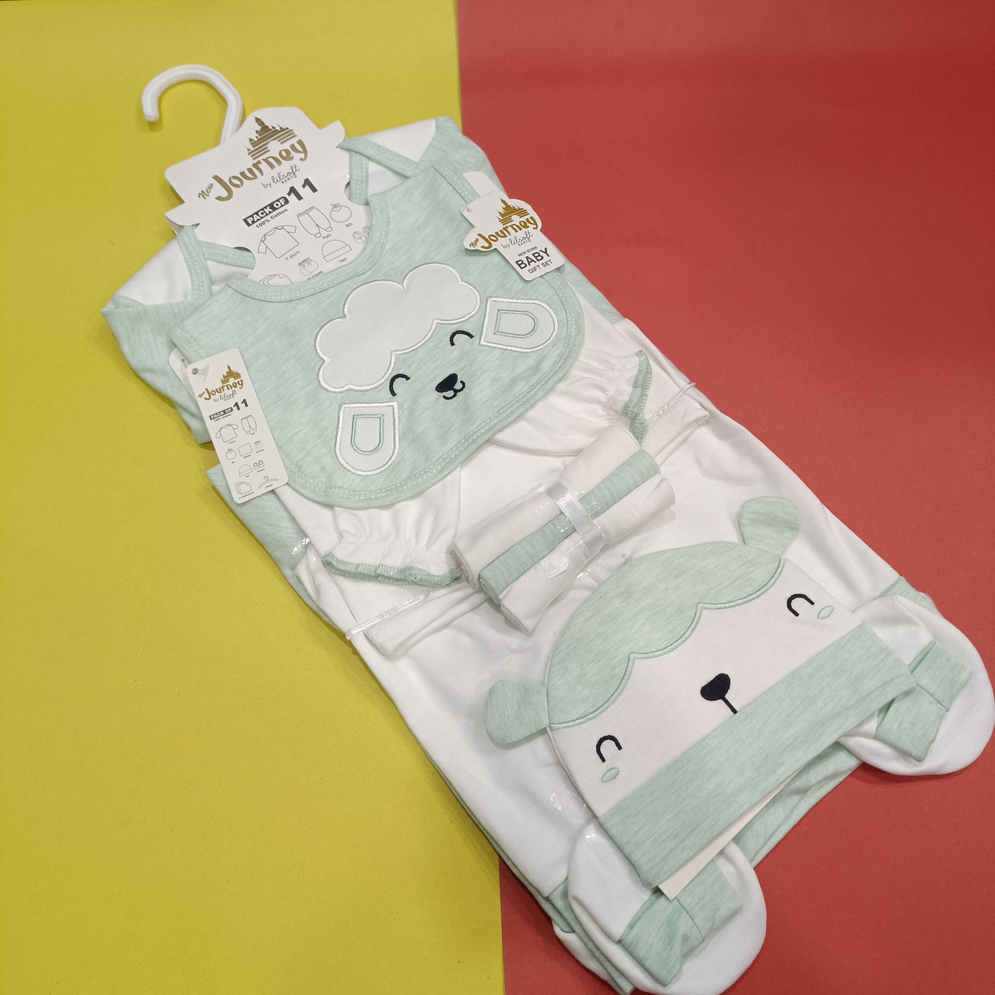 - Contains T-shirt, Trouser, Bib, Mittens, Hat, socks wrapping sheet & Hanger, 3 face towel