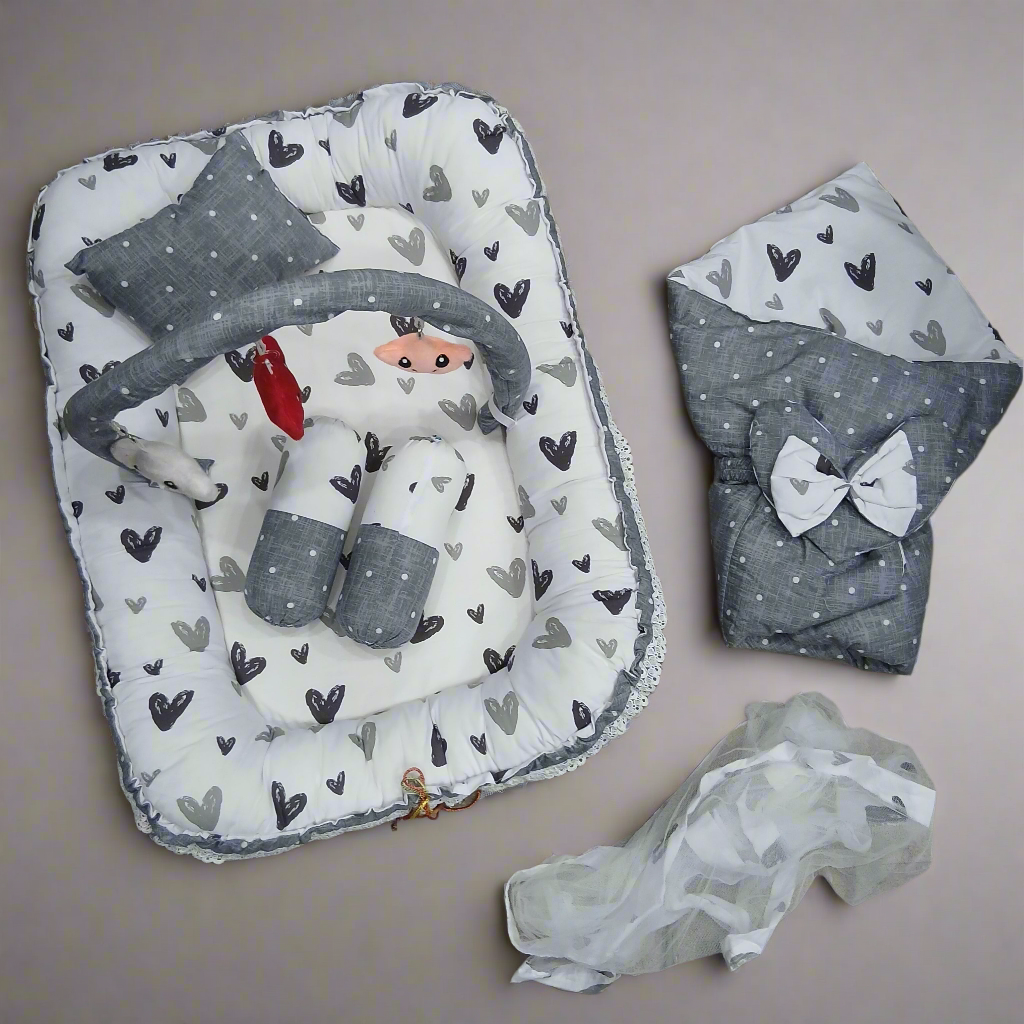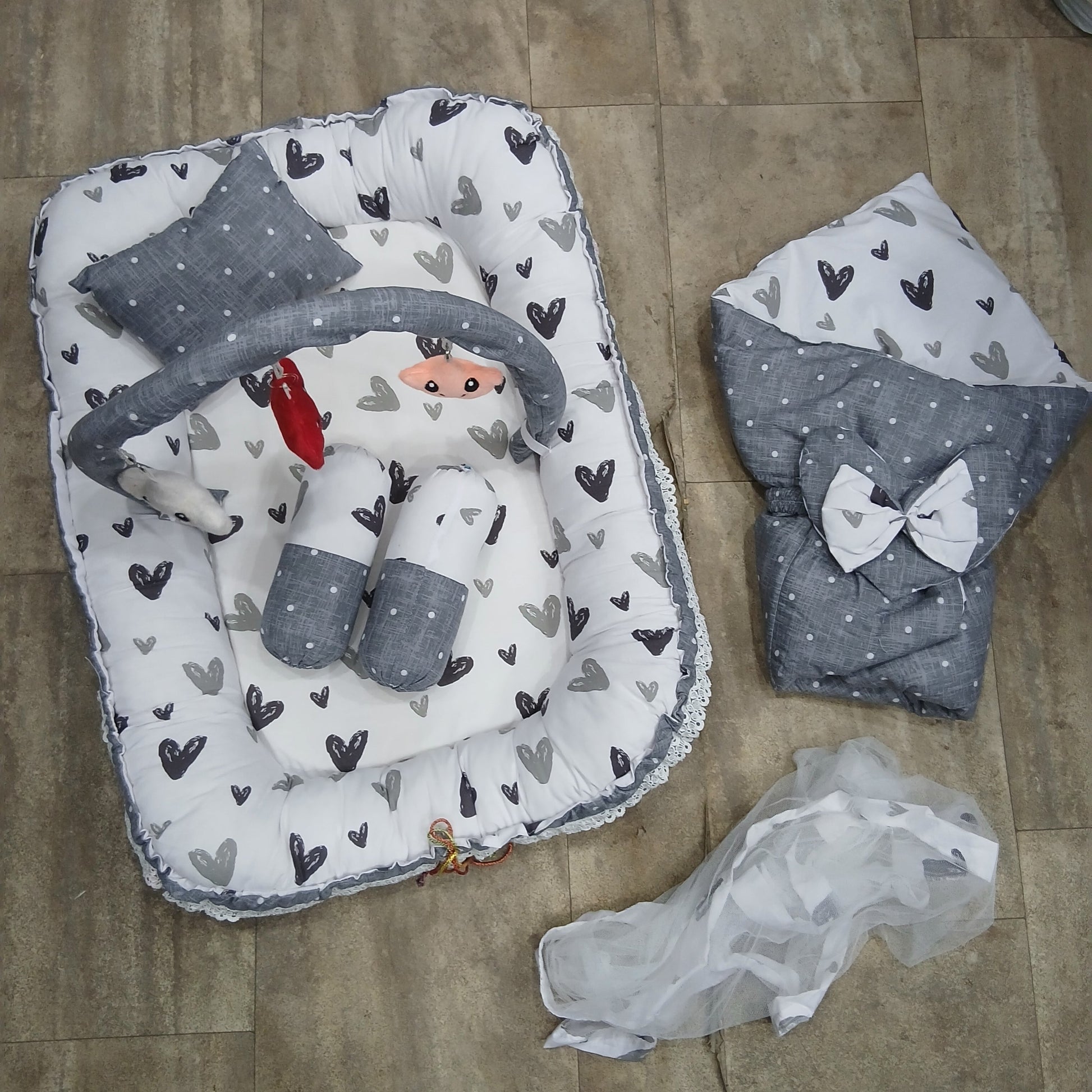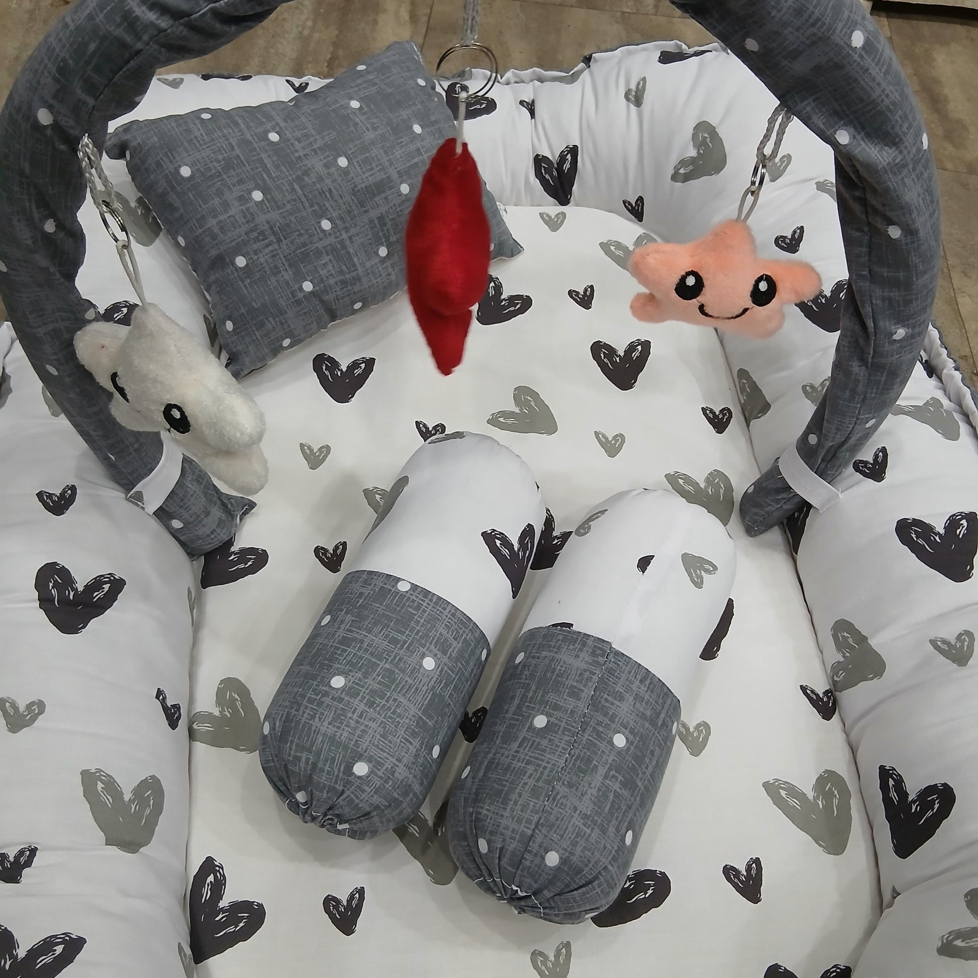 6 Pieces Rattle snuggle grey hearts