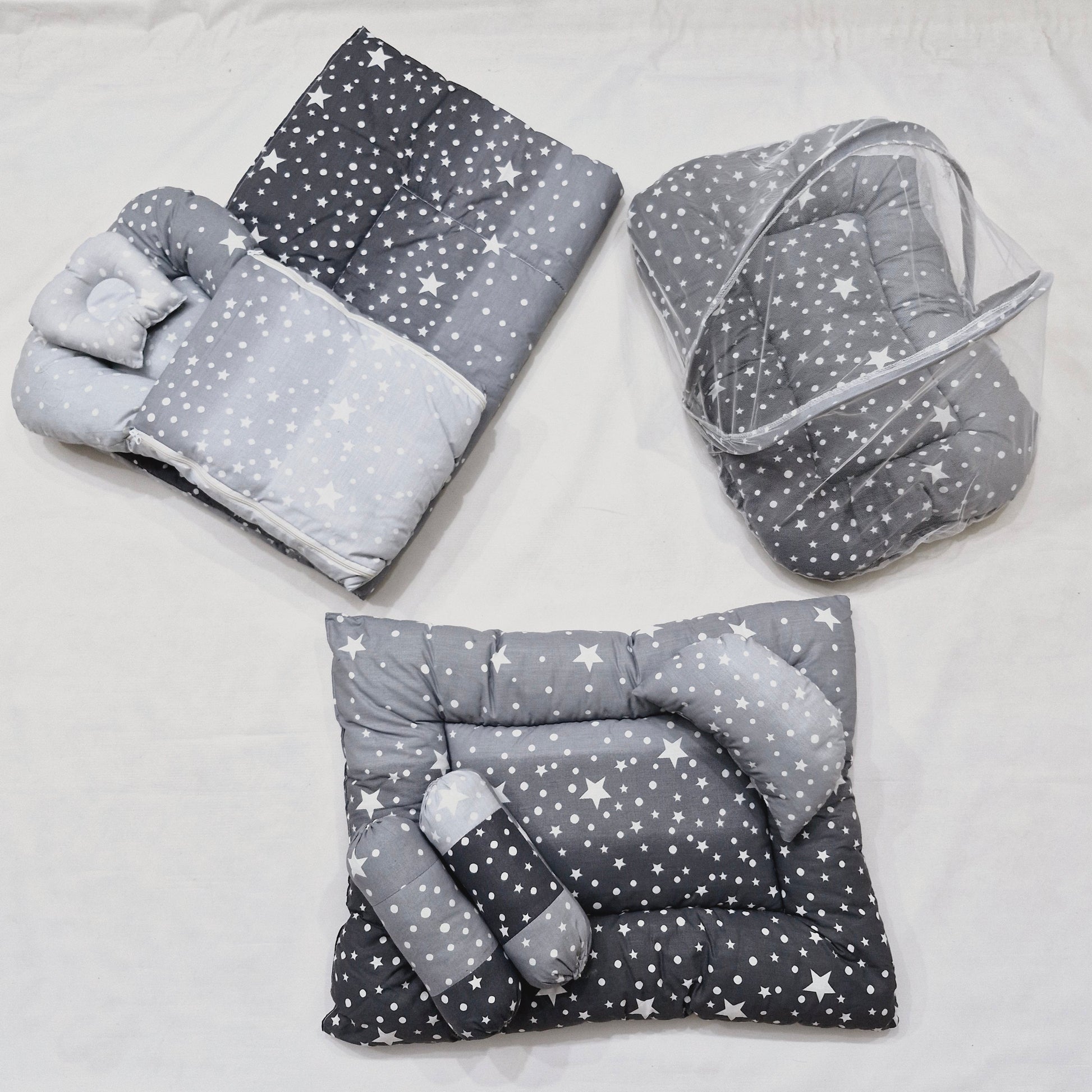 8 Pieces Baby Bedding Black And Grey Stars VOL-24-8