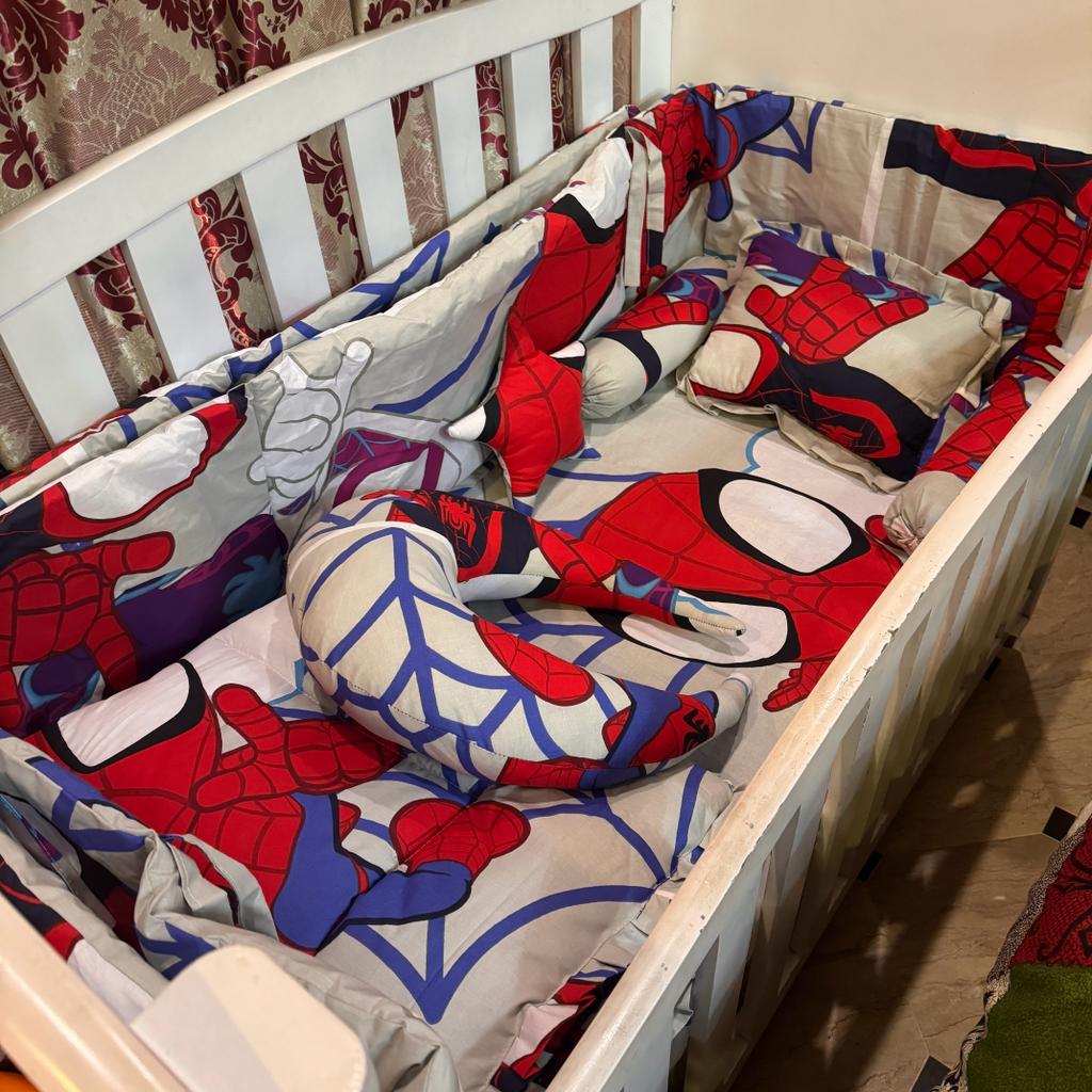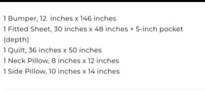 5 Pillows, Cot Bumpers , Comforter & Cot Sheet