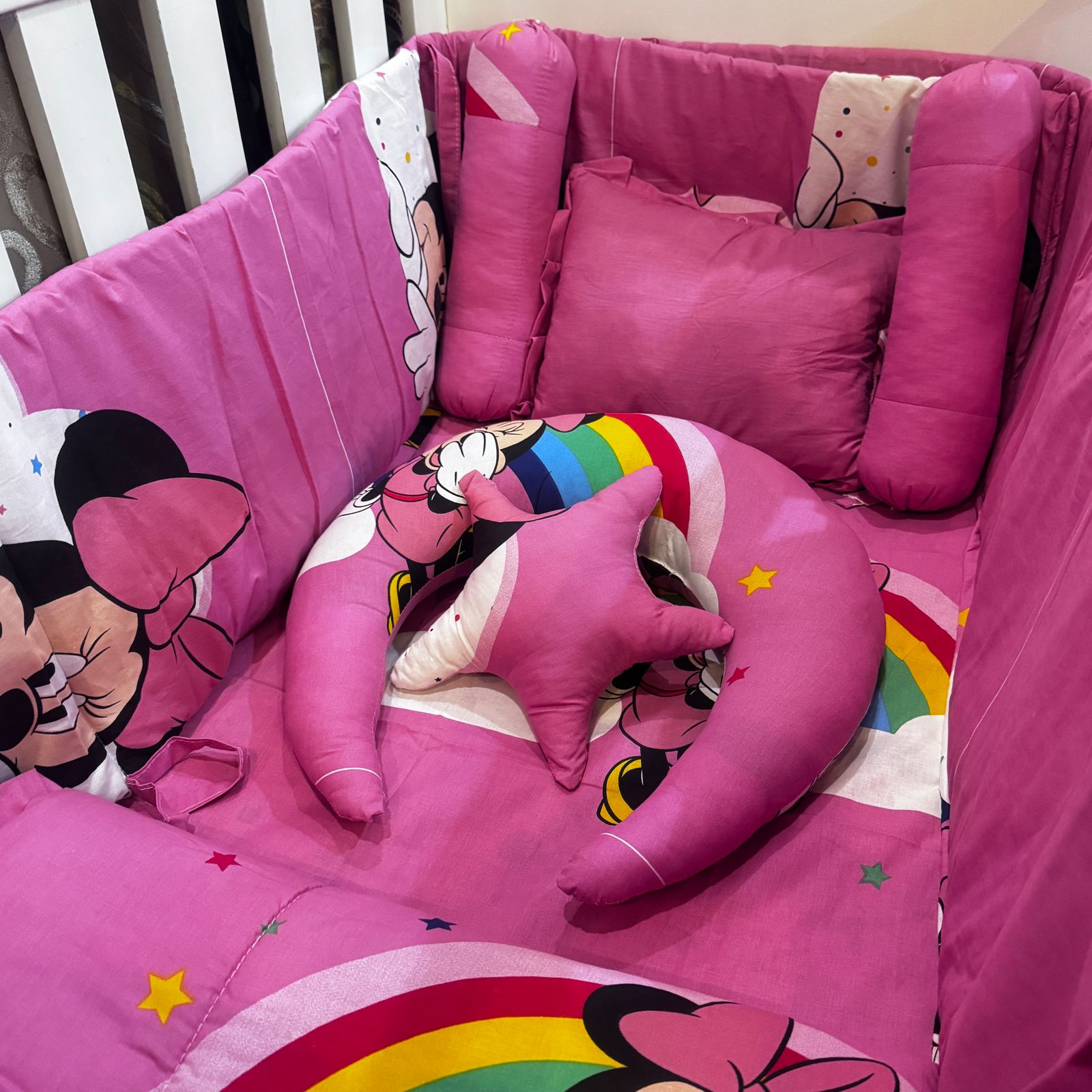 5 Pillows, Cot Bumpers , Comforter & Cot Sheet