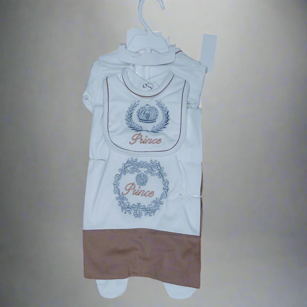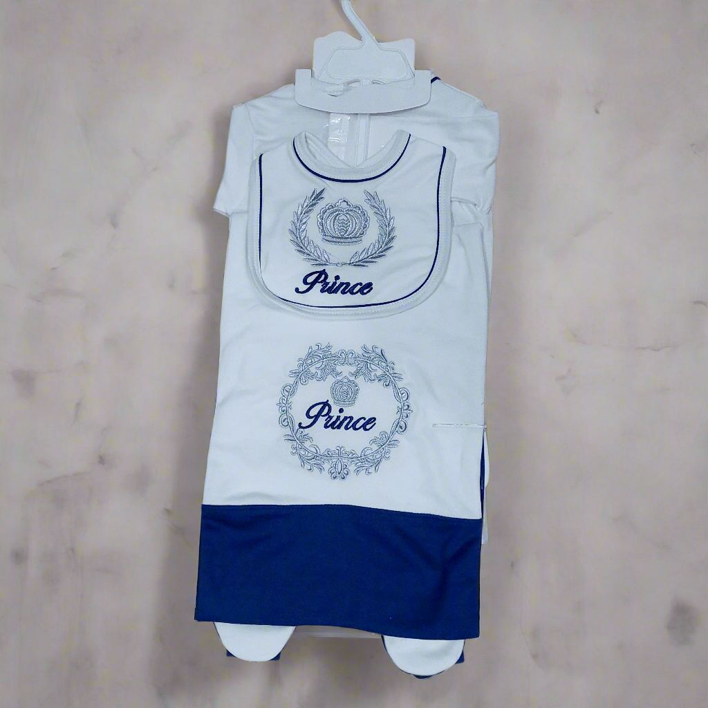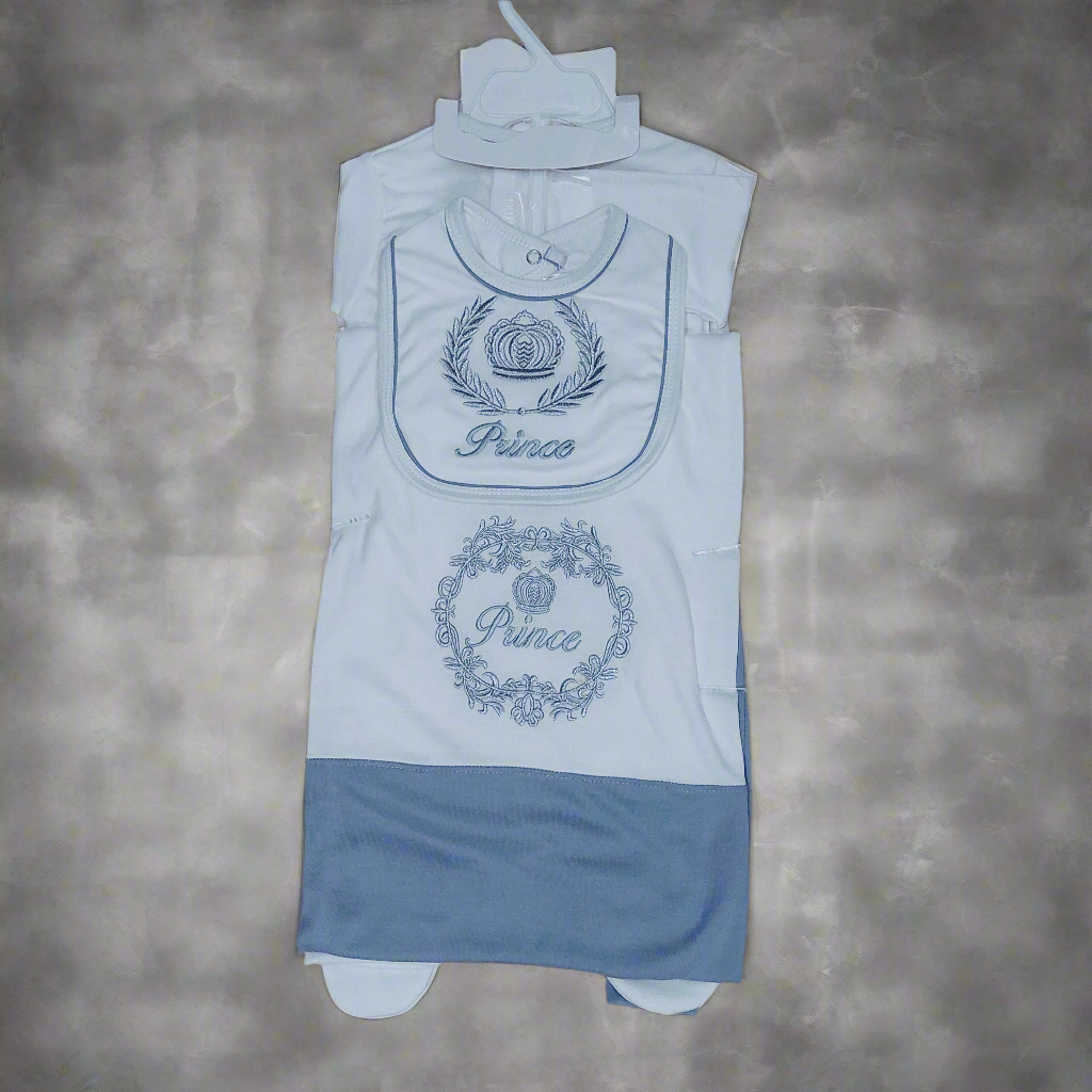 - Contains Full sleeves T-shirt , Trouser, Bib, Wrapping Sheet, Cap, Booties, mittens & Hanger