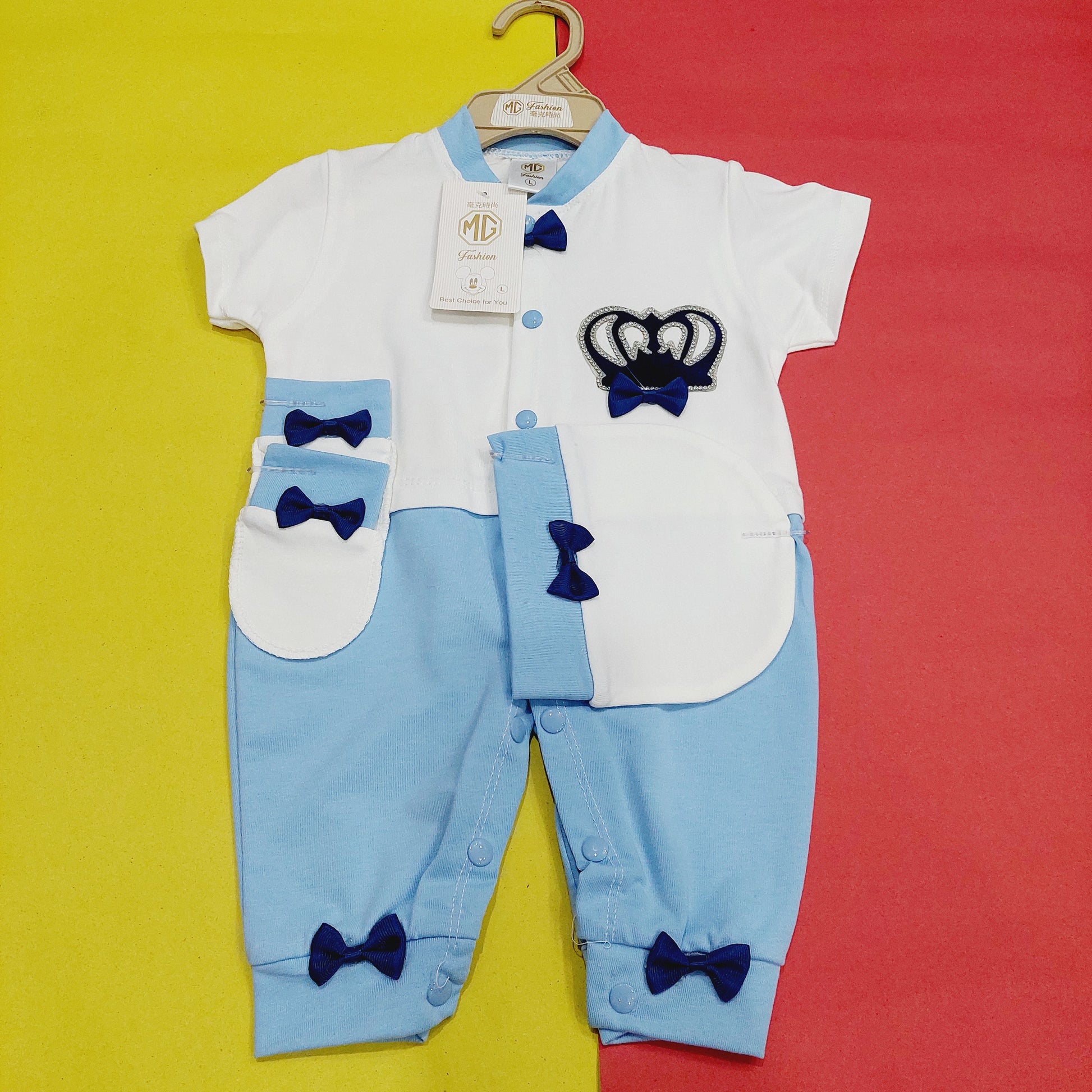 Turkish Baby Romper Half Sleeves Sky blue crown