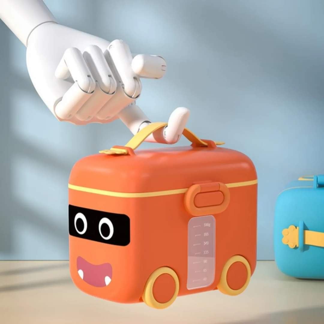 Can also be food piggy bank, take out the three grid within the core to the outer box to store fruit or other baby snacks.