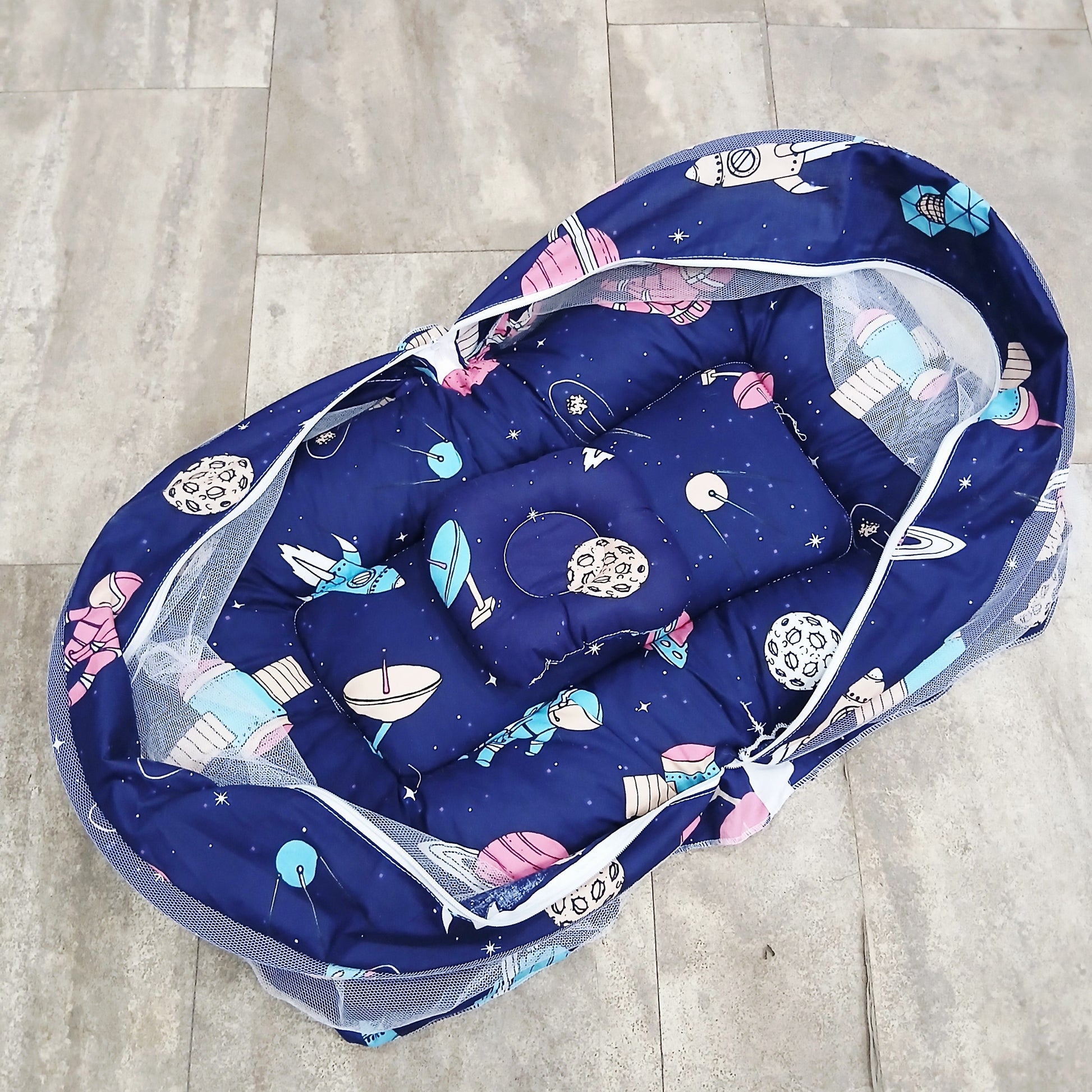 Stuff - CottonDimensions - Length - 30, Width - 17.5 inchesAge suitability - 0 to 6 months Protection from mosquito With pillow