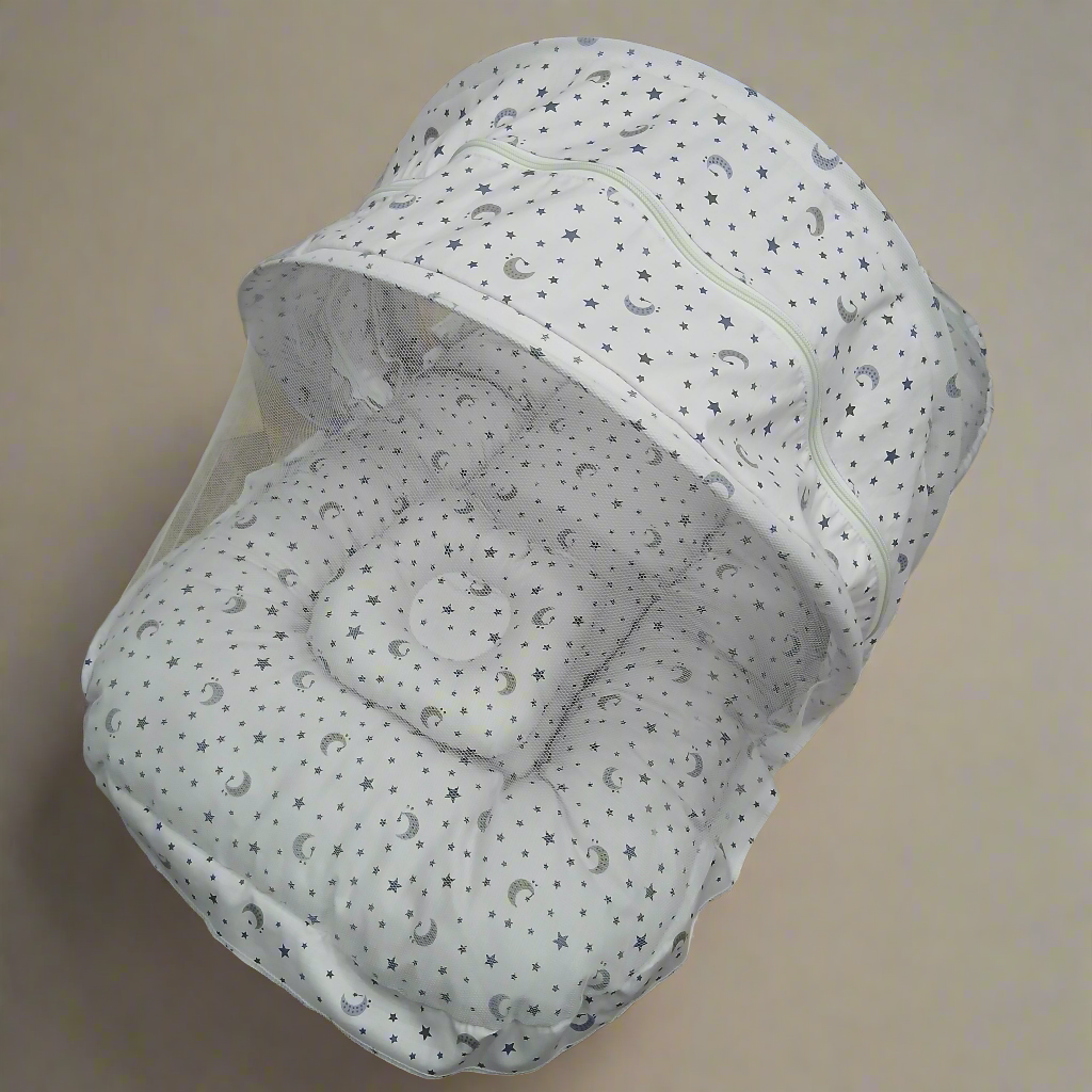 Stuff - CottonDimensions - Length - 30, Width - 17.5 inchesAge suitability - 0 to 6 months Protection from mosquito With pillow