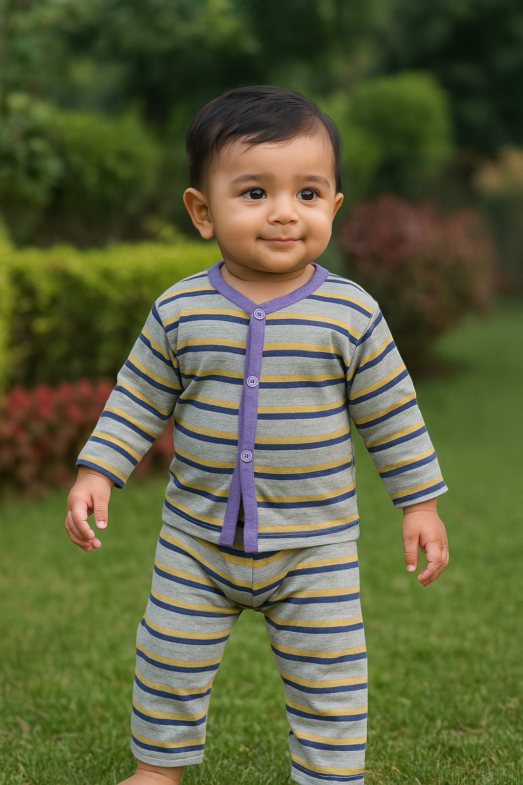 Night Suit purple yellow Grey lining
