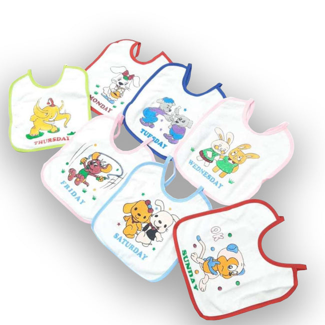 - Our delightful, little baby bib is created with colorful prints that keep your baby cute and clean. The velcro closure is quick and easy to remove.