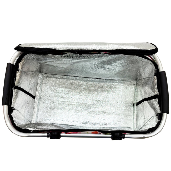 Accessories/Picnic Basket Can be used for clothes, toys & food itemsStuff - Outer cloth & steel and inner insulating foiling Dimensions - L * W * H ( 18 * 9.5 * 9 inches ) Easy to carry Easy to close through zip