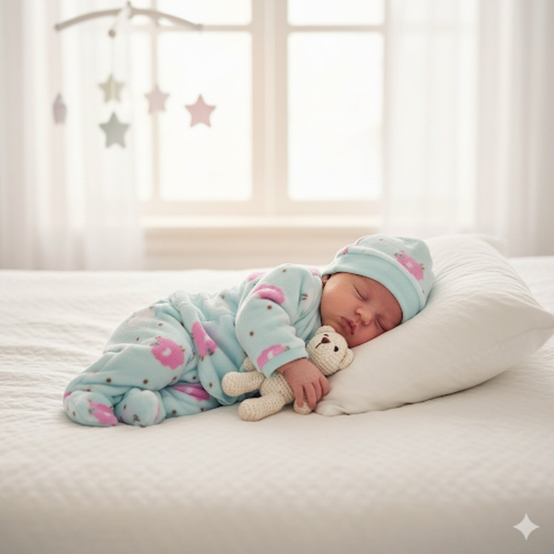 Six pieces Baby Suit For Winter sea green sheep